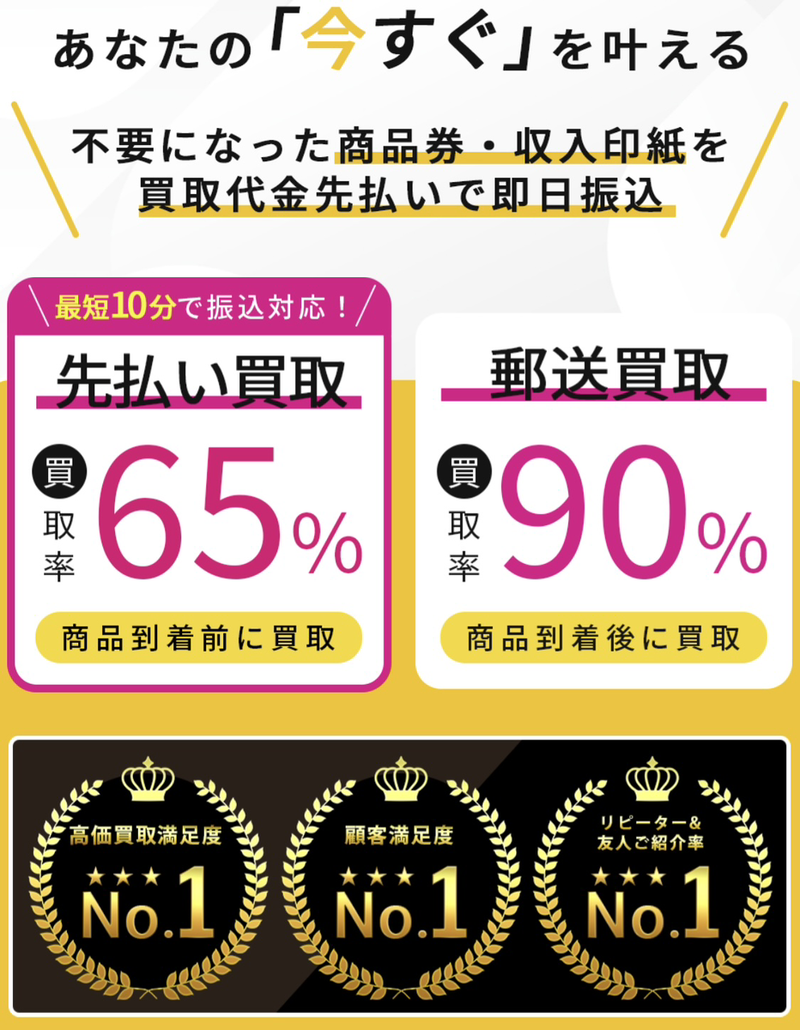 買取商品は、不要な商品券、百貨店ギフト券、収入印紙、切手などの金券です。