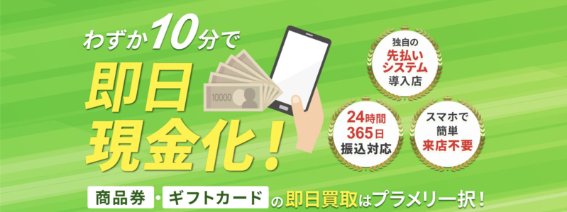 商品券・ギフト券・収入印紙などを「買取形式」で、商品発送前に即日現金を受け取れる仕組みです。